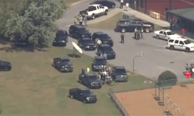 Policijske snage u blizini škole bile su naoružane teškim naoružanjem, a neki su nosili kacige i neprobojne prsluke. Djeca iz škole školskim su autobusima, u pratnji redarstvenika, prevezena u obližnju crkvu.