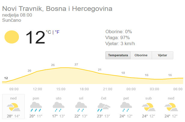 Prognoza vremena za Bosnu i Hercegovinu